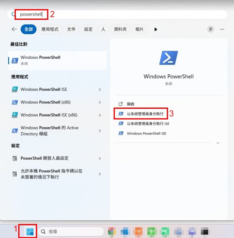打開你的powershell並使用管理員執行