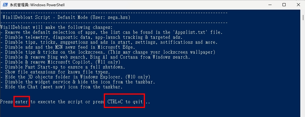 讓你確認一下,沒問題的話就按enter執行清除,如果要終止就請按 CTRL+C終止程序
