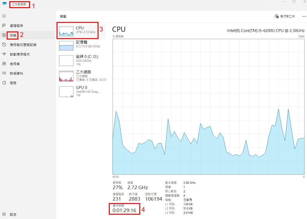 最簡單的確認方式,就是打開工作管理員看看你的運作時間是多久?如果超出你工作的時間(因為你每天都會關機的話)就是中了! 你的電腦沒有真正關機,只是進入深度休眠