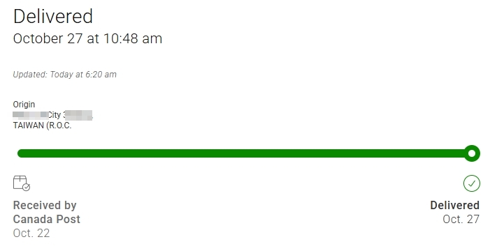 10/27 上午10點已經送達