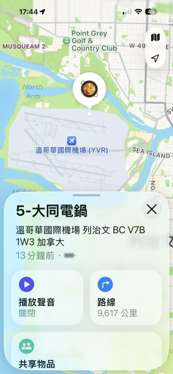 10/21 電鍋的定位突然出現在加拿大溫哥華機場