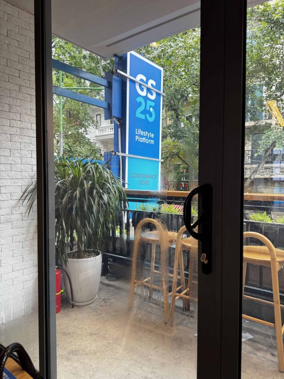 吃完了米線就逛逛走走,沒想到在河內竟然有韓國的GS25便利商店,這我開眼界了!!,其實我們是來便利商店躲雨的,買個食物,坐下來休息一下,看看街上熙來人往的吵雜人車。