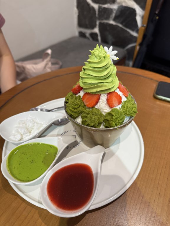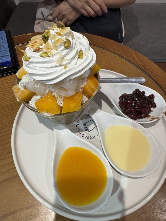 逛完街,來吃冰,坐下來讓腿歇息一下,剛剛好~這冰品好吃,解熱。