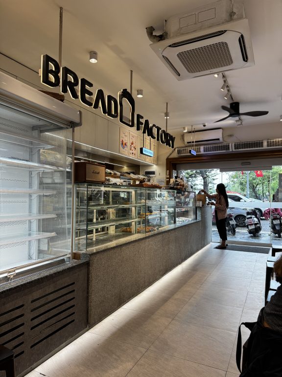 走出環劍湖,有人提議就環湖一圈,邊走邊逛,好喔~ 就邊走邊逛,第一站先來到Trang Tien Plaza高檔百貨公司來逛街,裡面可以說是空無一人,因為裡面都是高單價位的國際奢侈品品牌與潮牌店,一般工薪階級的當地人根本無法消費,不過我們發現到這高檔奢侈百貨公司裡面竟然隱藏著一間Uniqlo,女人們怎麼可以放棄買衣服的機會呢?所以我們在這邊耗費了大約1.5小時,最後女人們就買了幾件天深衣物XD,逛完高檔百貨公司之後就走到對街的咖啡店吃冰 Bread factory – Tràng Tiền