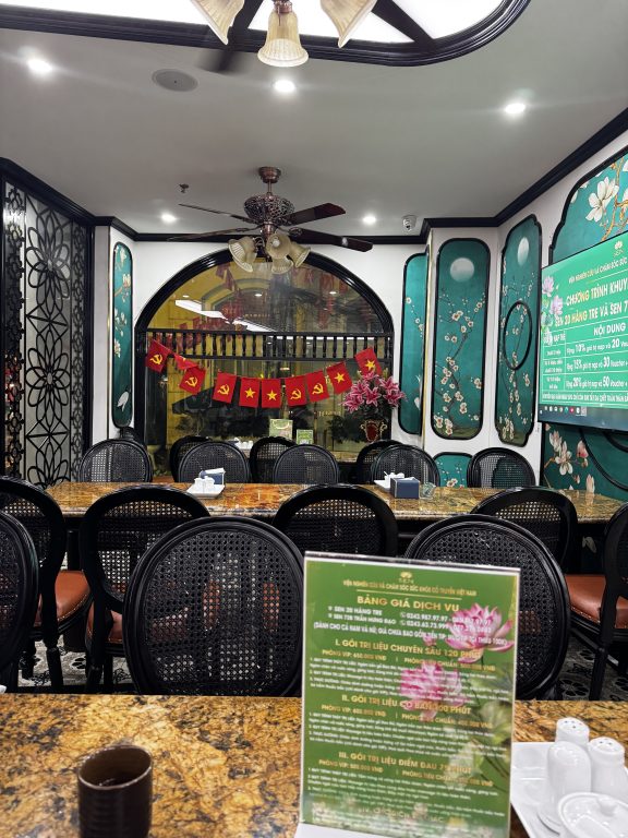 之後我們先走回hotel休息,同時討論傍晚要去哪裡按摩,後來決定來去按摩三溫暖,Sen Hàng Tre,整個療程是 沖水–>冷池–>冷藥水池–>檜木藥水–>烤箱–>蒸氣室–>按摩,這樣一套服務下來是大概合台幣$600元,非常划算,按摩完還有粥與水果可以吃還不錯。