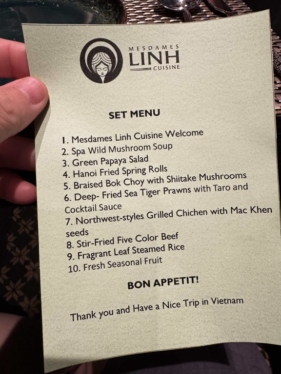 逛完禮品店,導遊帶我們來吃午餐。 餐廳名 Mesdames Linh Cuisine 聽說也是高級餐廳,反正我們把它當成遊覽車菜,就吃唄。