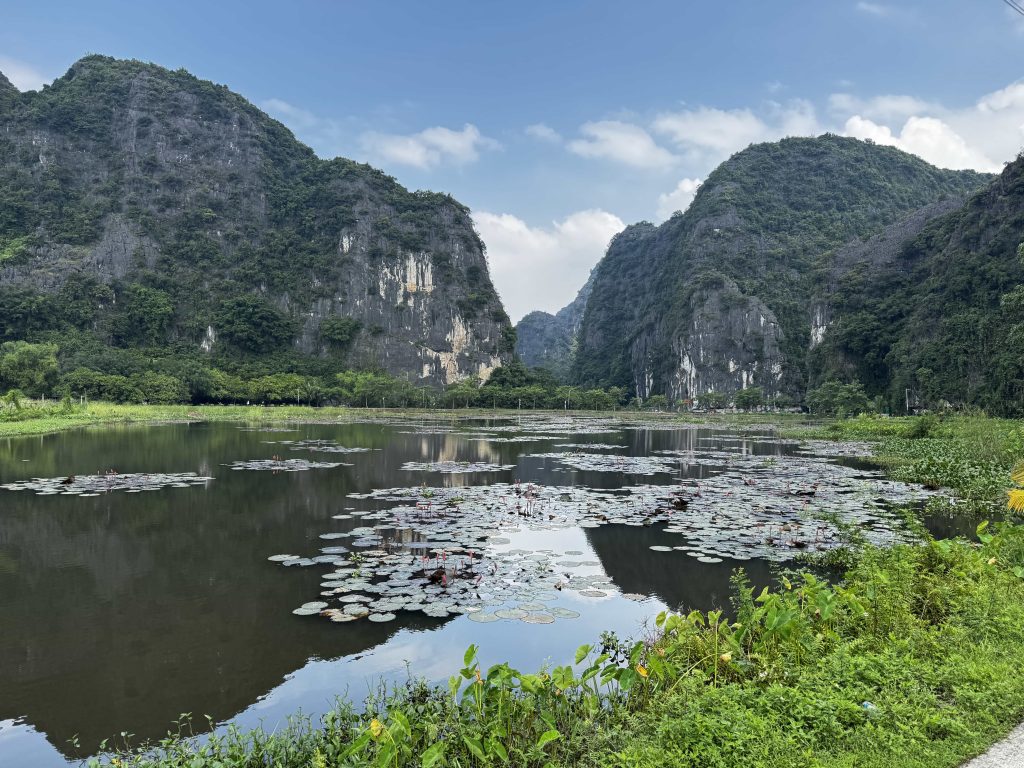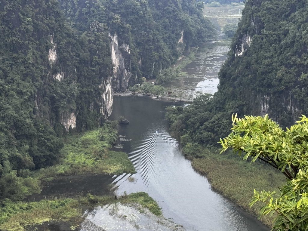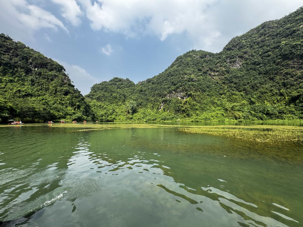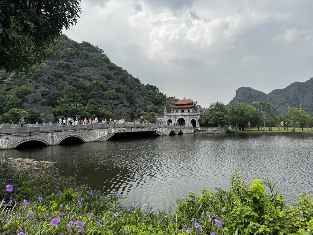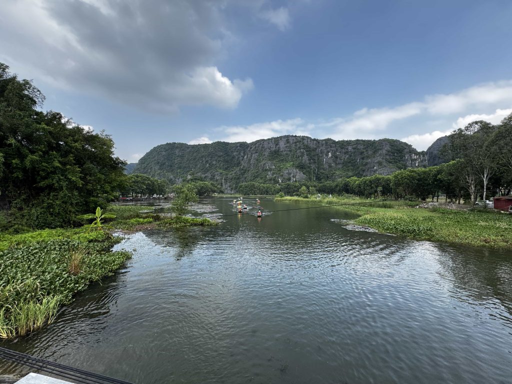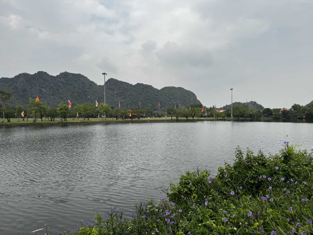 抵達折返點Bến Thánh他在地標上說是一個公園。在水邊,可以遠眺Núi Ngoạ Long (Lying Dragon Mountain)