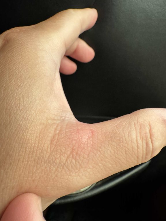 因為操槳划船划得太興奮,竟然沒有發現自己的左手虎口起了水泡,上車回程時才覺得隱隱作痛,一看,啊~~ 起水泡了