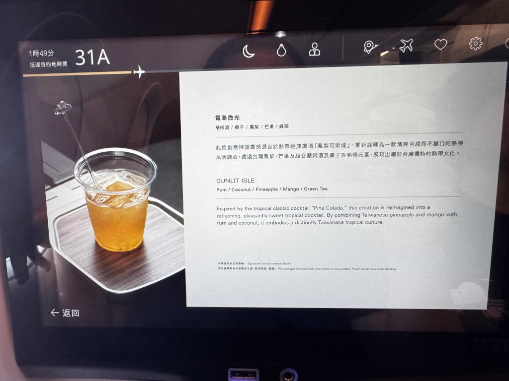 回程的星宇特調是”霞島微光”也是好喝,來程與回程都喝到不一樣的星宇特調,開心。