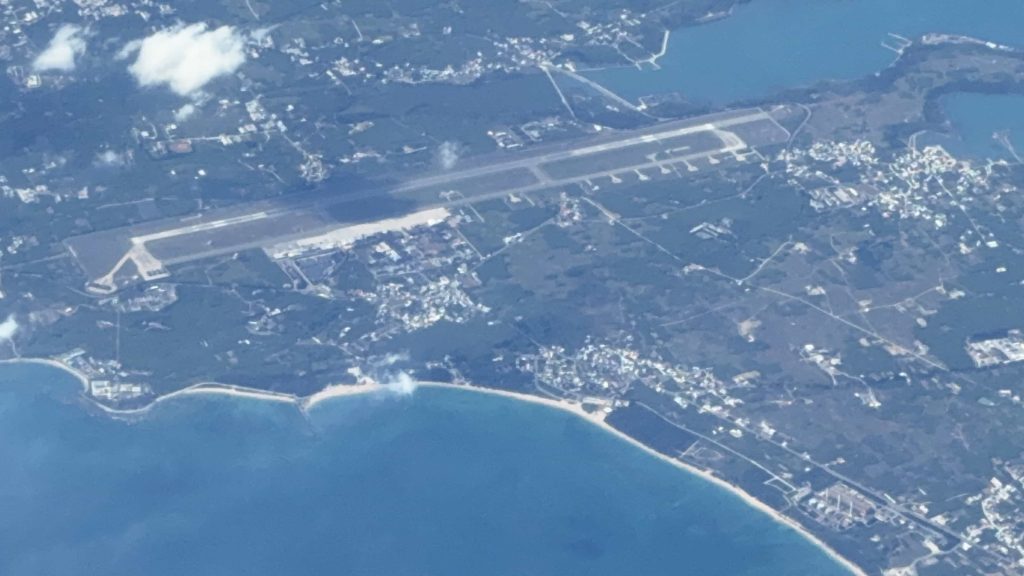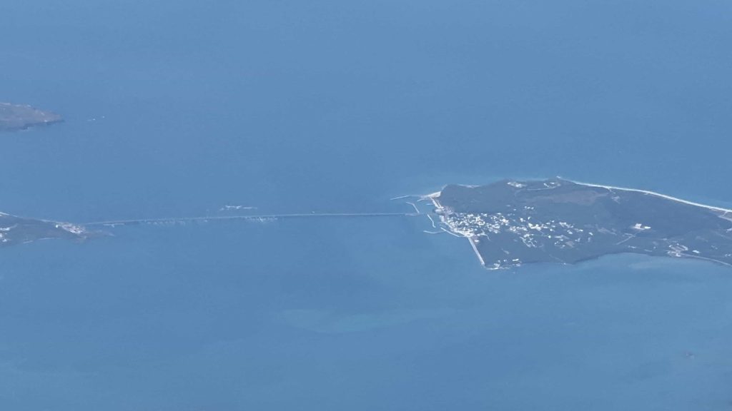 飛越澎湖,可以看到澎湖跨海大橋與澎湖馬公機場
