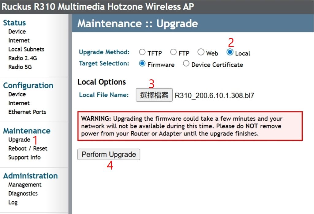 3.下載好 R310的 Unleashed 韌體, Ruckus Unleashed AP 200.6.10.1.308 (GA) Software for R310