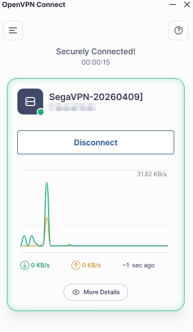 將VPNConfig設定檔再餵回去給client端的app中設定好,點擊連線,連上openvpn server之後再去 myip 看看就可以發現到,IP已經是 openvpn server的ip了